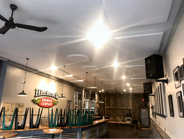 DDS Acoustical Specialties utilized Chroma panels by Sound Seal to tame the acoustics in the tasting room of the Hitchcock Brewing facility on-site at Kringle Candle. A number of years ago, owner Rich Pederson followed his passion and opened a brewery.