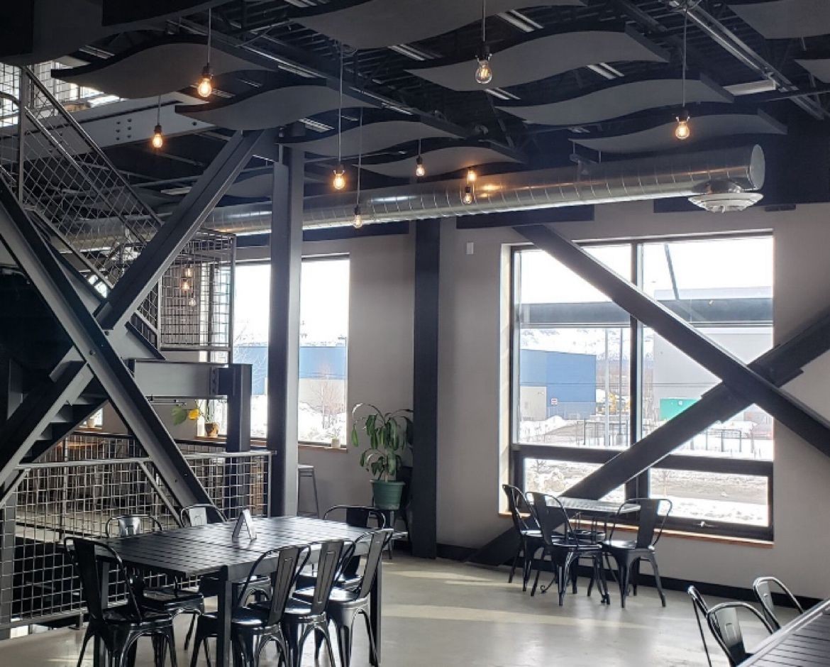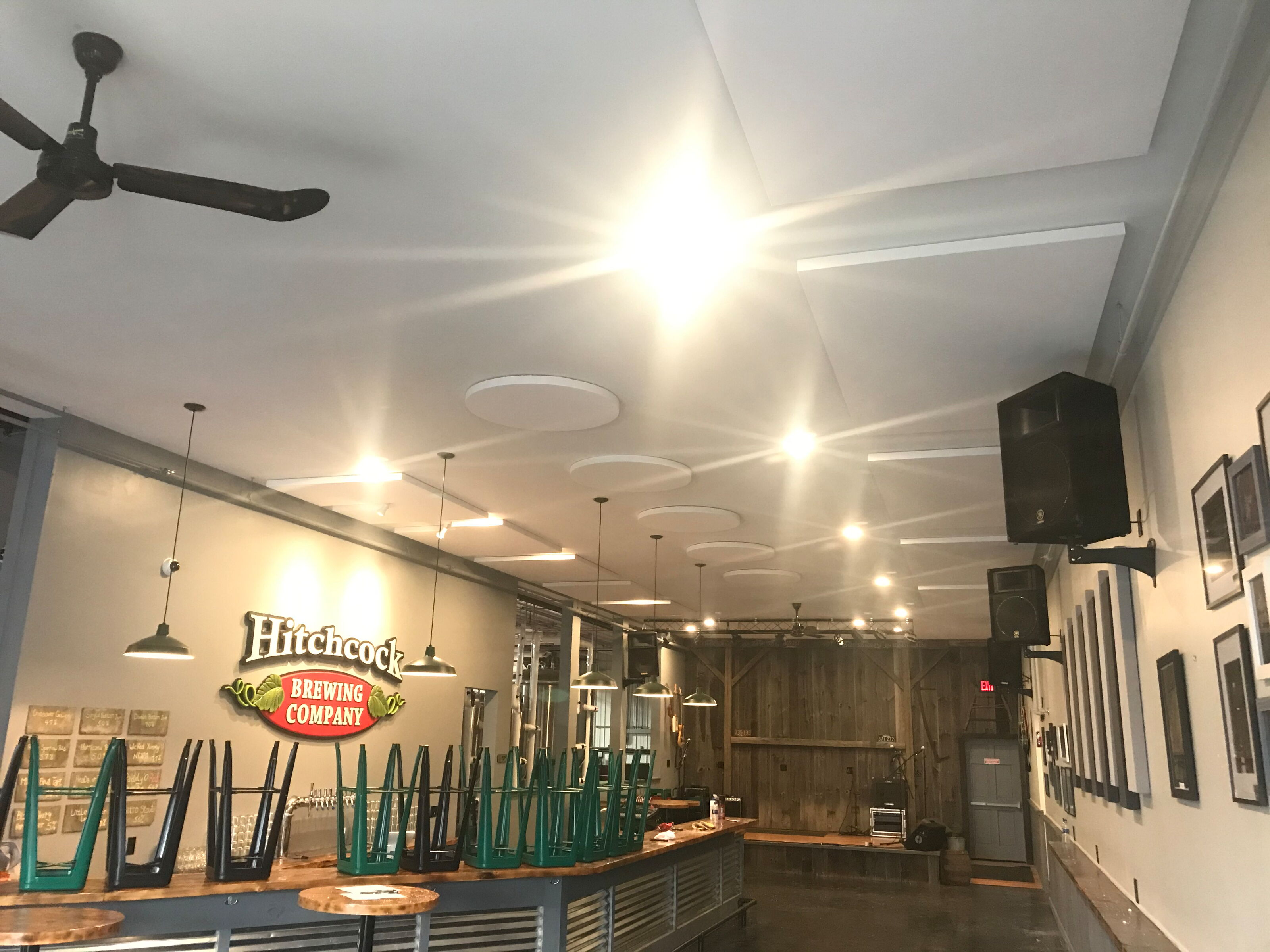 Fabric Wrapped Acoustic Ceiling Panels at Sly Bandit Brewing -